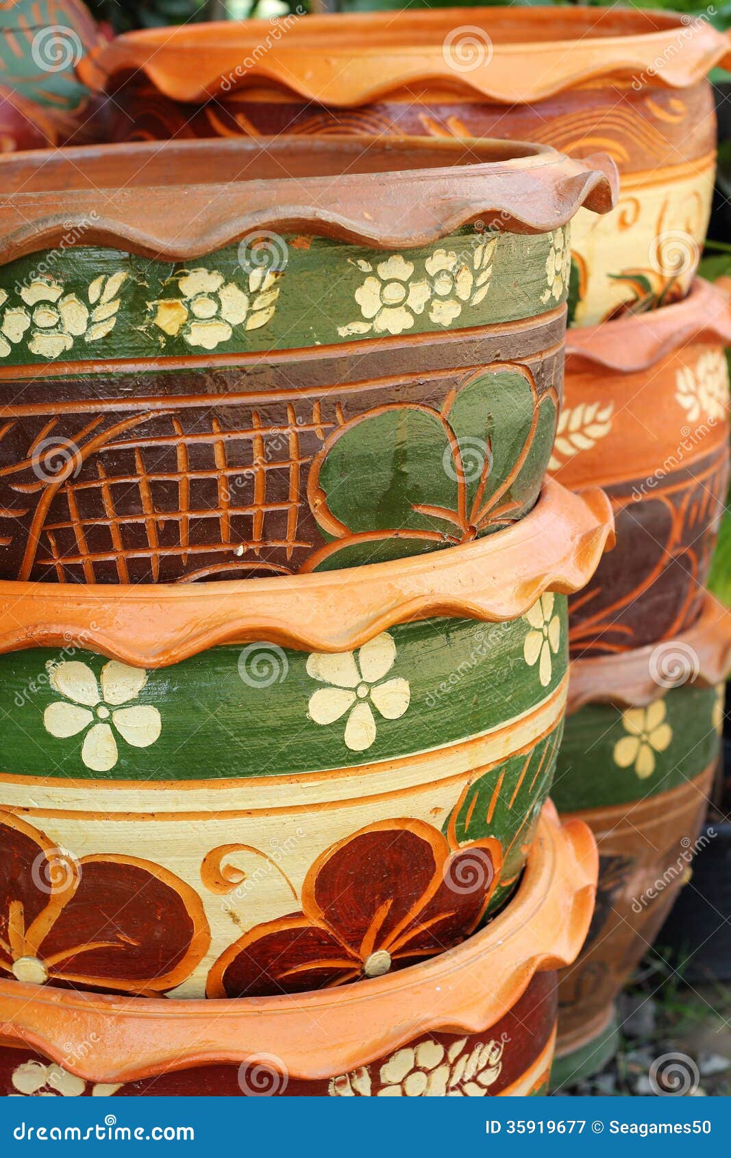 Piante In Vaso Variopinte Impilate All'aperto. Immagine ...