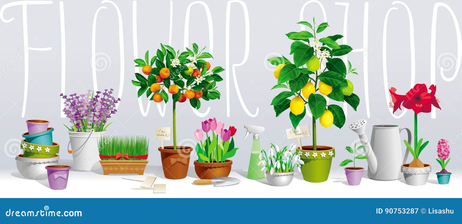 Insieme Delle Piante Da Vaso E Degli Strumenti Di Giardino ...