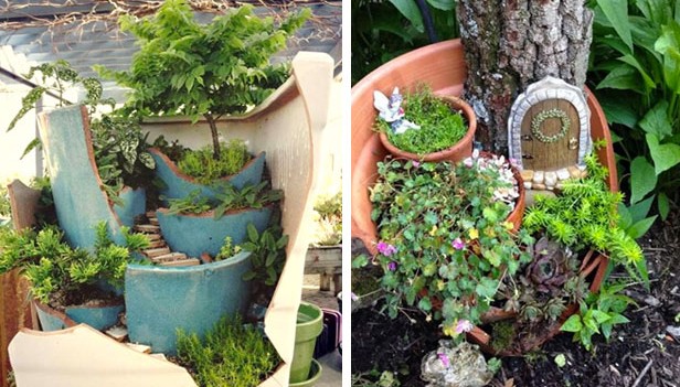 Riciclare i vasi rotti in fantastici giardini in miniatura ...