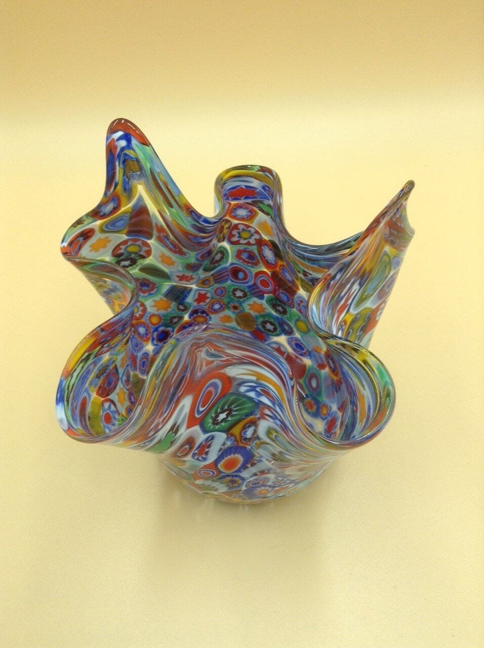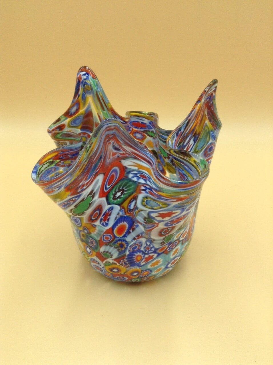 vaso a fazzoletto Murano con murrina millefiori ...