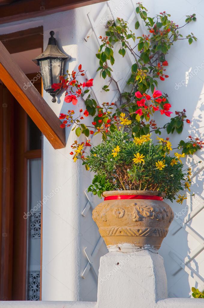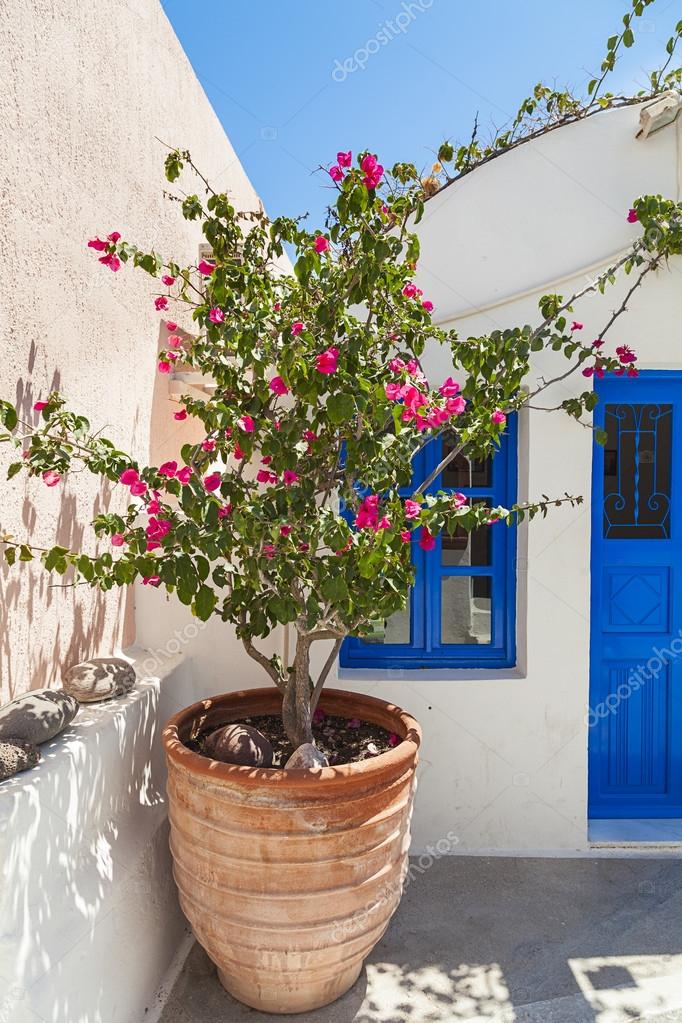Vaso greco tradizionale con bouganville, isola di ...