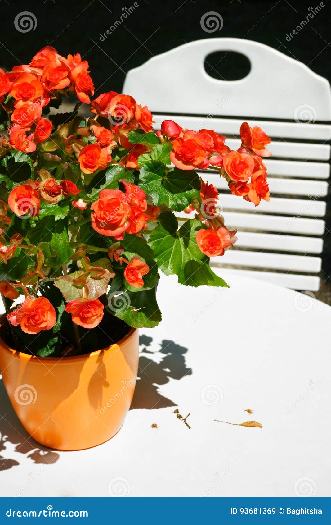 Di solito sono piante annuali, ma Bellissima Begonia tuberosa coltivata in vaso.