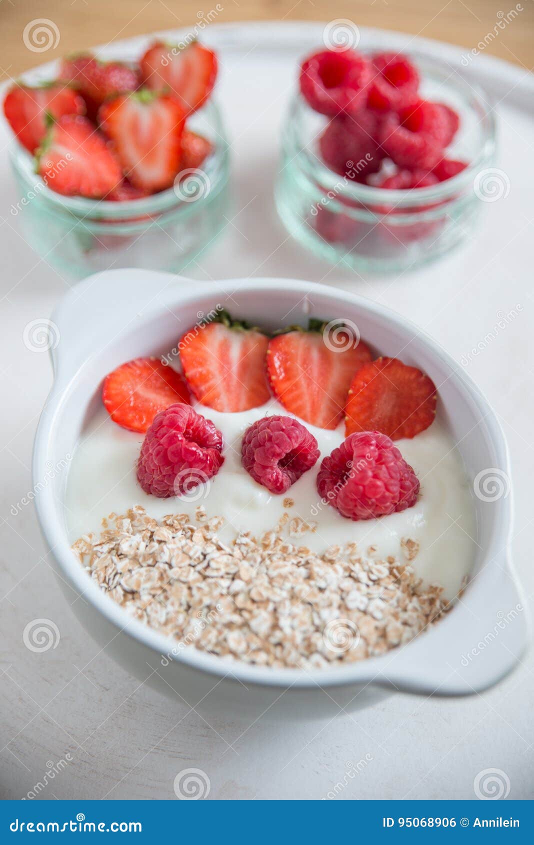 Yogurt Con Granola, Le Fragole Ed I Lamponi Fotografia ...
